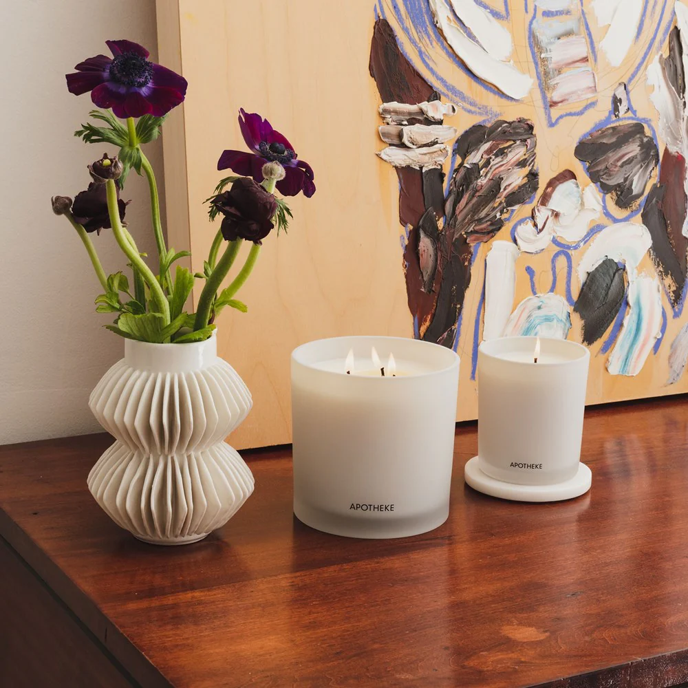 Create a sense of serenity with the soothing scent of Earl Grey Bitters. This 3-Wick Scented Candle is made with a premium soy wax blend and essential and perfume-grade fragrance oils in a luxe white-translucent glass vessel.